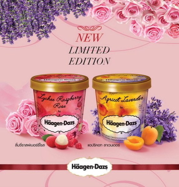 ฮาเก้น-ดาส นำเสนอไอศกรีม 2 รสกลิ่นดอกไม้แสนอร่อยด้วยแรงบันดาลใจจากธรรมชาติ กลิ่นลิ้นจี่ ราสพ์เบอร์รี่โรส และกลิ่นแอปริคอท ลาเวนเดอร์มาให้คุณลิ้มลองเป็นครั้งแรก แต่อย่าช้า เพราะรส ลิมิเต็ด อิดิชั่นนี้ (Limited Edition) มีจำนวนจำกัด และจะวางจำหน่ายเพียงไม่นาน! ฮาเก้น-ดาส รสลิ้นจี่ราสพ์เบอร์รี่โรส ผสานส่วนประกอบ 3 ชนิดให้ได้รสชาติเข้มข้น หอมหวานของดอกไม้ อย่างลงตัว ในขณะที่แอปริคอท ลาเวนเดอร์ เป็นรสชาติผลไม้ที่มีกลิ่นหอม ผสมผสานเพื่อทำให้คุณ สดชื่นและผ่อนคลาย ฮาเก้น-ดาส มุ่งเน้นรักษามาตรฐานคุณภาพ โดยทั้ง 2 รสชาติผลิตจากวัตถุดิบ พื้นฐาน ของส่วนผสมที่มีคุณภาพสูง ได้แก่ ครีมจากฝรั่งเศส นม น้ำตาลและไข่จากแม่ไก่ที่เลี้ยงแบบ ปล่อยตามธรรมชาติ